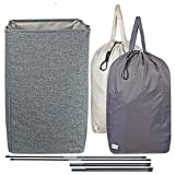 UniLiGis Laundry Hamper, Collapsible Laundry Basket with Removable Laundry Bags, Linen Clothes Hamper for Bedroom, Laundry Room, Bathroom, College, Grey