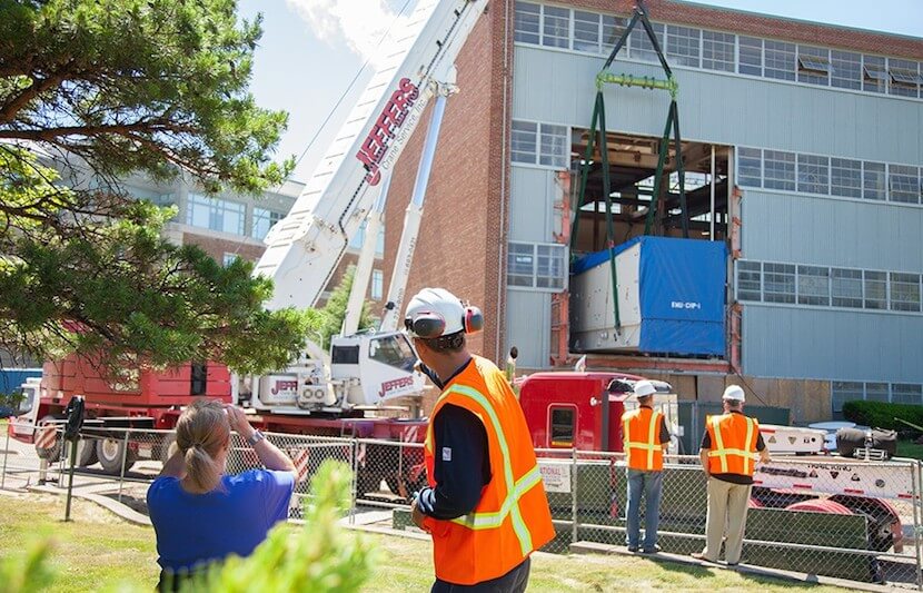 In furtherance of the Co-Gen (co-generation) project, the university used a 500-ton crane to lift the 55-ton turbine into place. It replaced a 29-year-old Co-Gen unit that stopped working in April 2016.