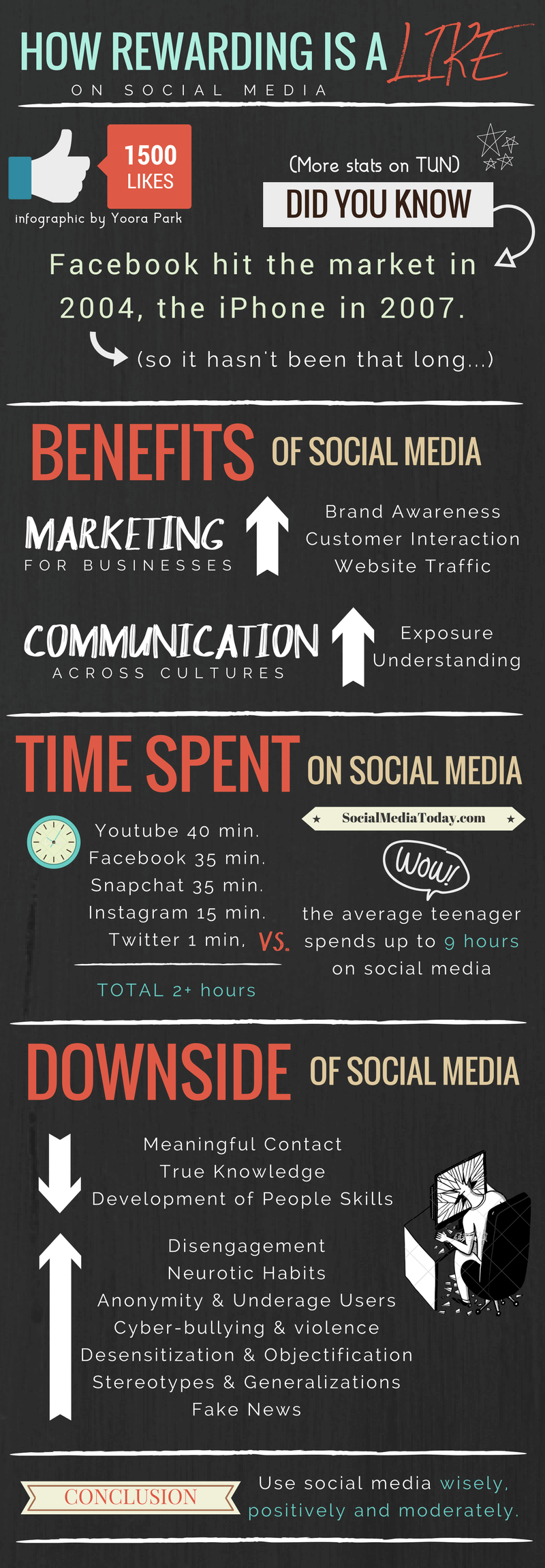 The rise of social media has changed the way we connect with each other. It wasn’t that long ago when Facebook hit the market (2004) and the iPhone came into being (2007), but our culture and social interactions have been forever changed. While there are notable benefits of social media, primarily in marketing and communication, modern society has blown social media out of proportion and let it take over their everyday lives. Such rabid consumption of social media, if unchecked, could be harmful to society.