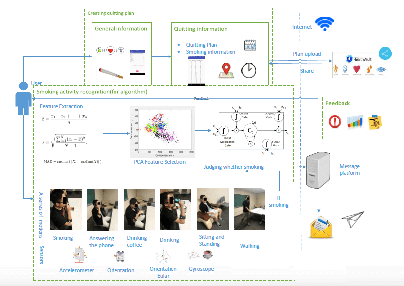 From the collected time-series sensor data, the wearable armbands can recognize even the very subtle sequence of motions, such as bringing a cigarette from hand to mouth, and taking out a lighter with one hand and raising another in front of the lighter to block the wind.