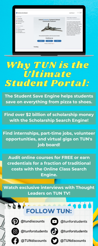 There are plenty of online resources for students, but only The University Network (TUN.com) has everything college students need to not only survive, but thrive!